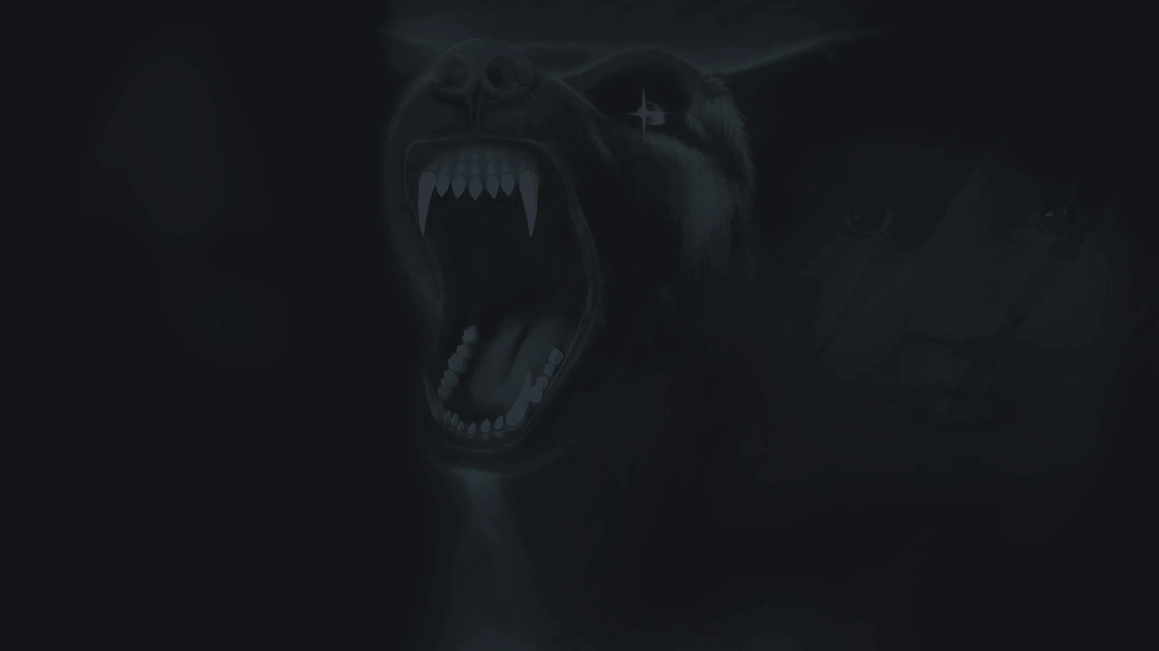 A monstrous figure emerges from the fog as someone screams.