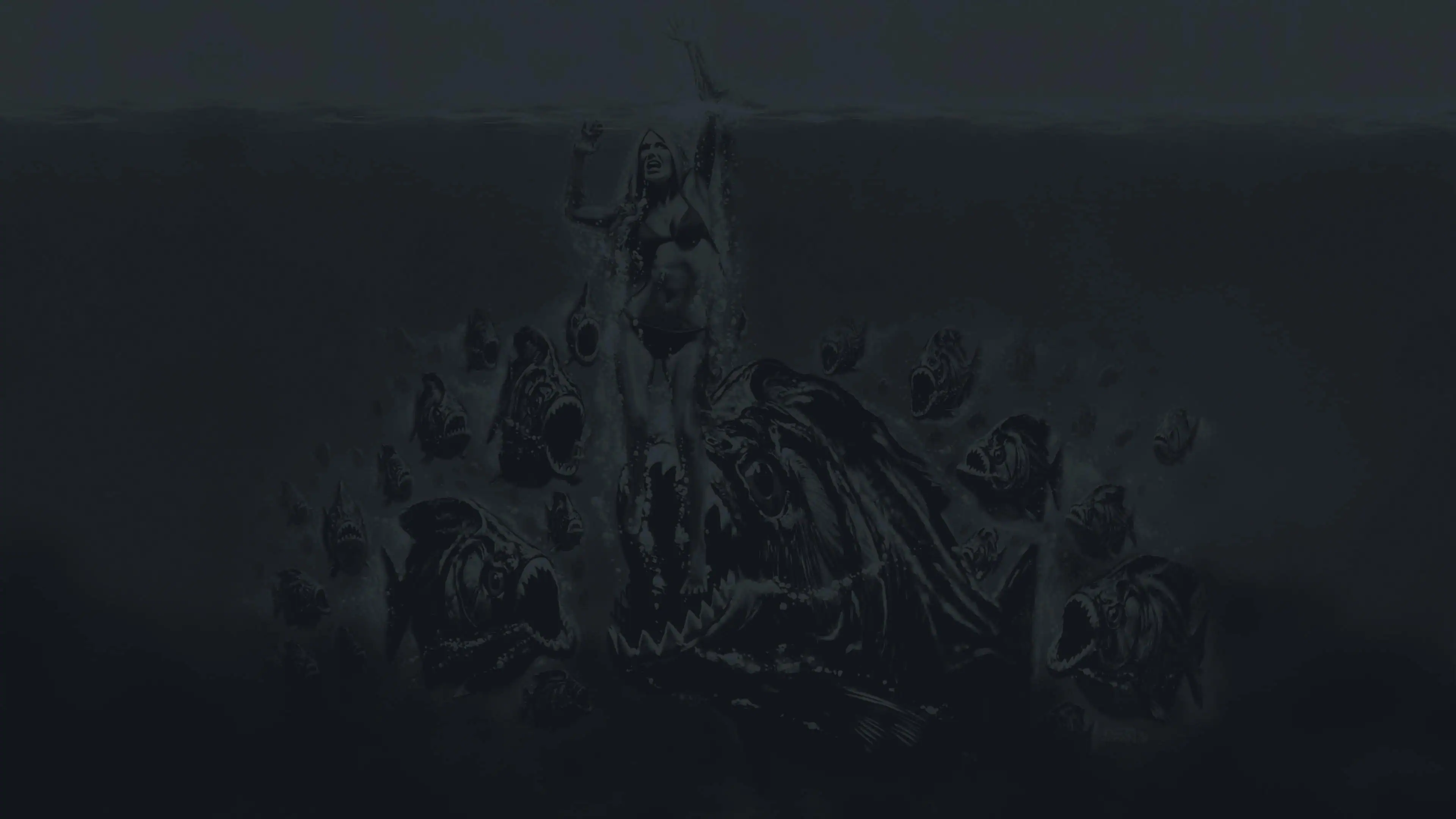 A mutilated hand reaches up out of the water, accompanied by an orchestral horn stinger.