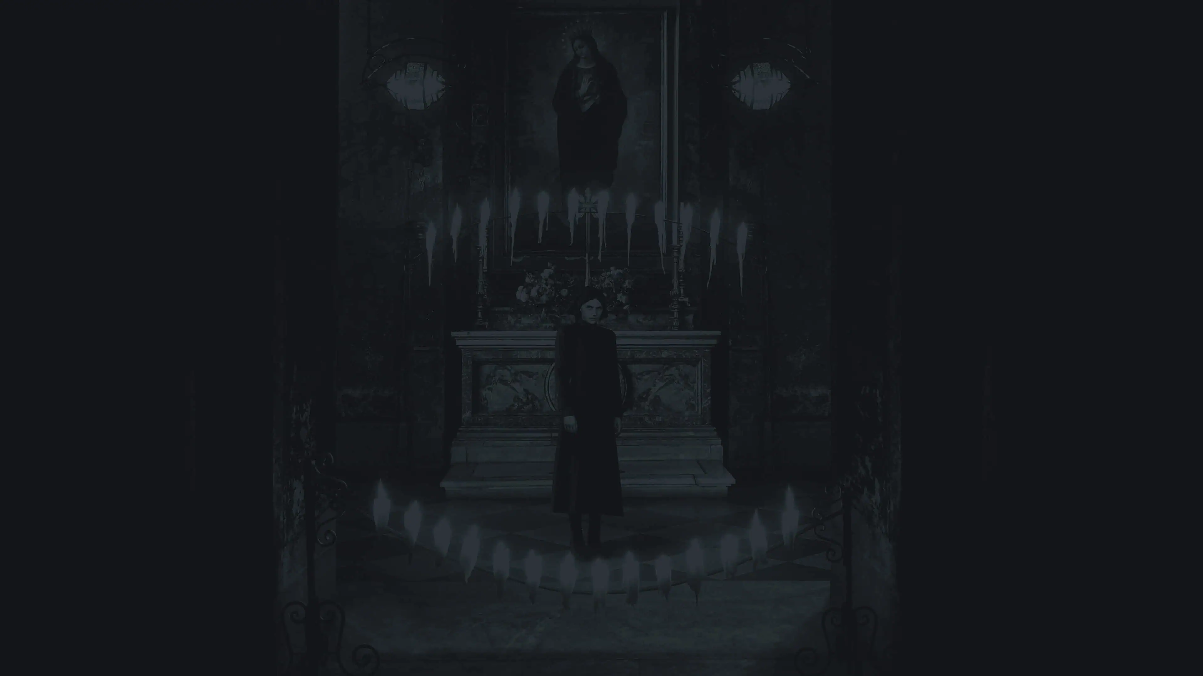 When the wind-blown curtain falls, Margaret’s habit has changed to that of an older nun, who turns and cries out as she approaches.